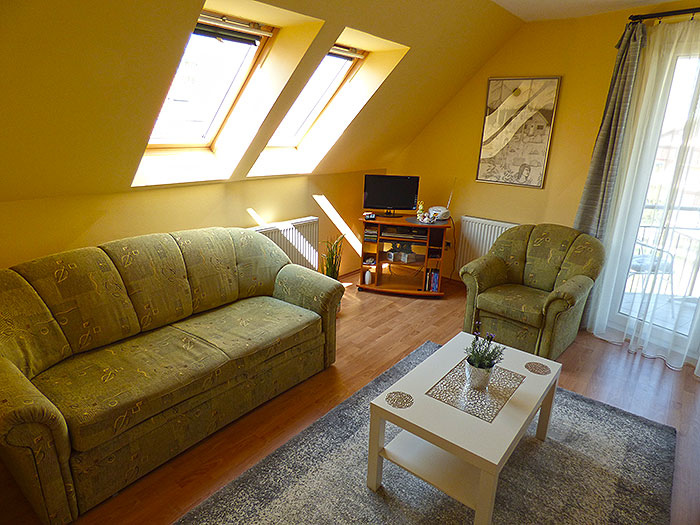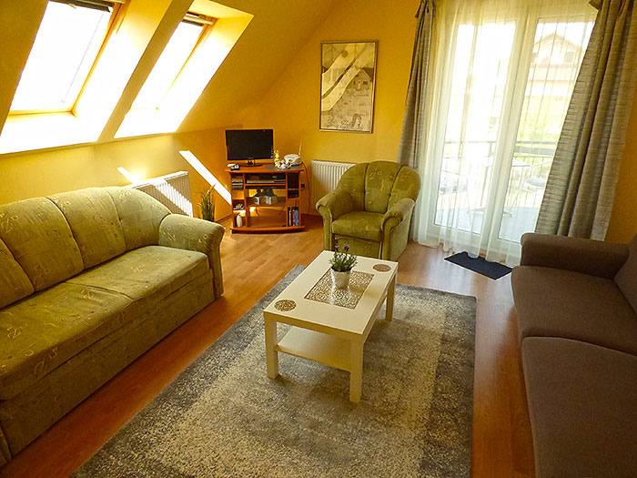 Schöne Dachgeschoß-Ferienwohnung mit Klimaanlage und Fahrstuhl für 2-4 Personen, nur 350m vom Thermalwaldsee Héviz und auch nur 5km vom Balaton, Fahrradverleih im Nachbarhaus und Frühstücksbistro in 20m,