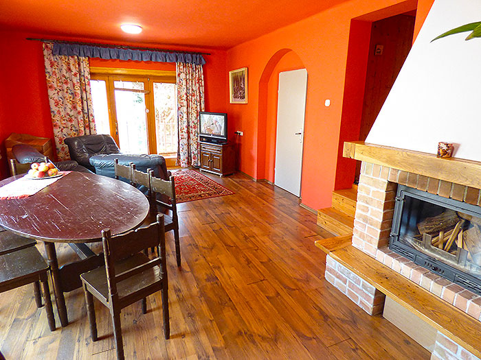 1. Ebene/EG: großes Wohnzimmer mit TV-Sat und Kamin pluß Esstisch, Bad, WC, Küche mit Kaffeemaschine, Herd mit Backofen, Mikrowelle, Geschirrspüler, Wasserkocher, Toaster, Kühlschrank,