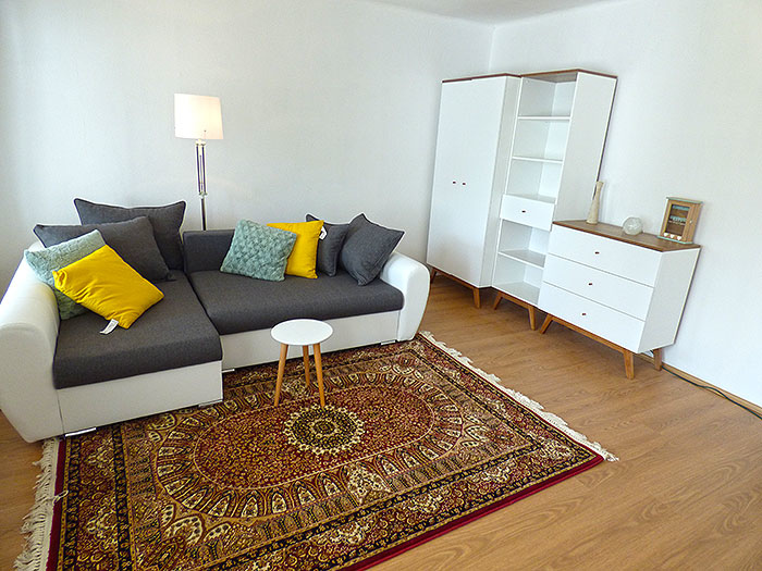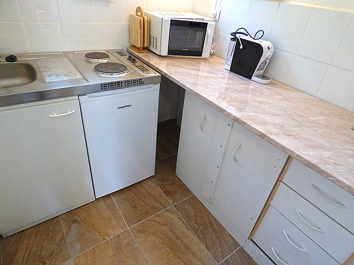 Wohnschlafzimmer für 2 Personen mit TV-Sat. und gr. Südtterrasse, Küche, Kühlschrank, Herdplatten, Kaffeemaschine, sep. Eßtisch,