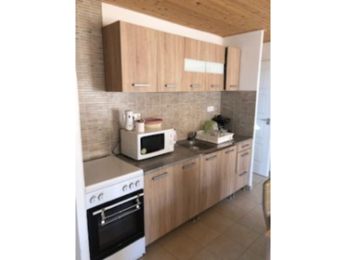 Wohnzimmer mit TV/Sat. und Esstisch inkl. Küche, Kaffeemaschine, Kühlschrank, 2-er Herdplatten, Mikrowelle, Toaster, Wasserkocher, Südterrasse mit Gartenmöbel, Spielplatz, Kinderhochstuhl, Kinderbett,
