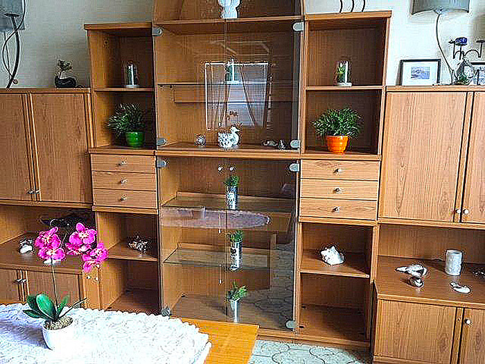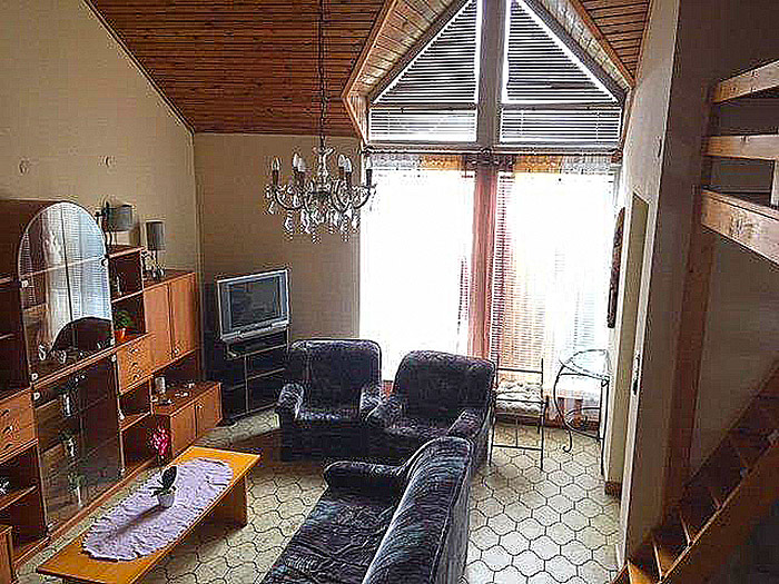 1.Ebene: großes Wohnzimmer mit TV/Sat. und großem Hochbett für 2 Personen und einer Südterrasse für 8 Personen, 1 Doppelzimmer, Bad, WC, Küche, Kaffeemaschine, Mikrowelle, Kühlschrank.