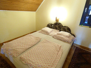 Kaffeemaschine, Mikrowelle, Kühlschrank, Waschmaschine, 3 Doppelzimmer mit je einer Aufbettungsmöglichkeit, Bad und WC, 1 extra WC,