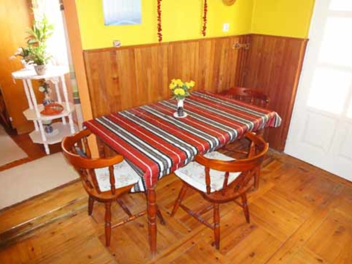Kochmöglichkeit, Kühlschrank, Kaffeemaschine, Esstisch für 3 Personen, Terrasse, Bad/WC, 1 Doppelzimmer(franz. Bett 2x2m breit), 1 Einzelzimmer wie auf dem Foto), TV/Sat.