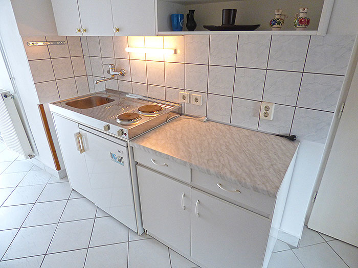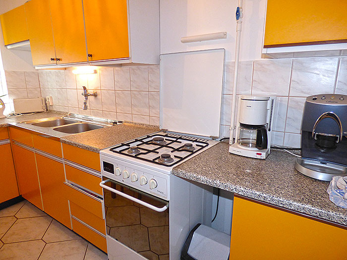2.Ebene: kl. Küche, Kaffeemaschine, Mikrowelle, Kühlschrank, Bad mit Dusche/WC, 1 Doppelzimmer mit TV/Sat, 1 Vierbettzimmer mit TV/Sat, Terrasse,