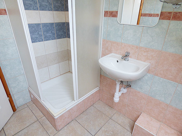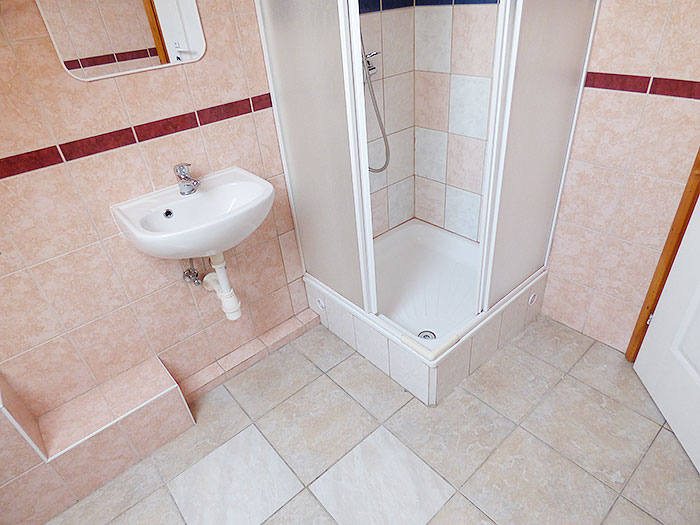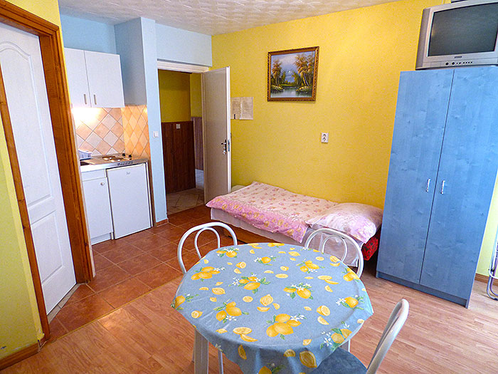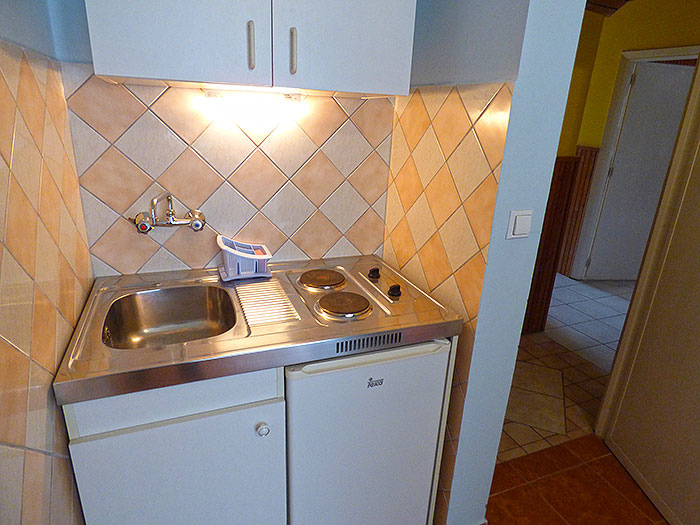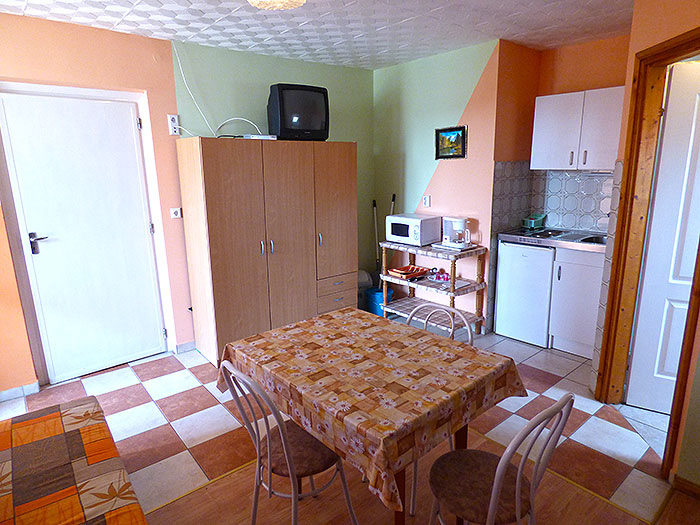2. Ebene(oben): separater Eingang: 1 Dreibettzimmer mit TV-Sat. und Terrasse, Bad/WC, Küche mit Sitzmöglichkeiten, Kaffeemaschine, Kühlschrank,
