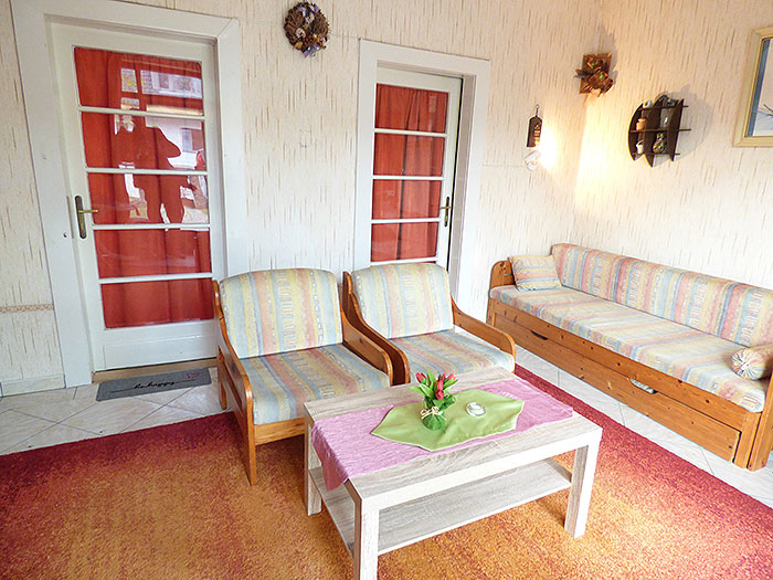Separater Eingang: Wohnzimmer mit einer Aufbettung für 2 Personen mit TV/Sat., neues Laminat