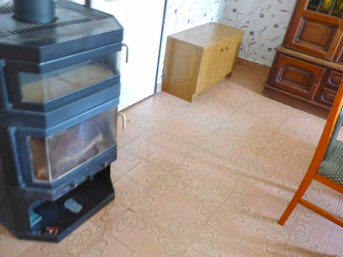 1.Ebene: (unten) sep. Eingang, Wohnzimmer mit TV/Sat und Kamin plus Terrasse, Küche mit Esstisch, Kaffeemaschine, Toaster, Wasserkocher, Herd mit Backofen, Kühlschrank,