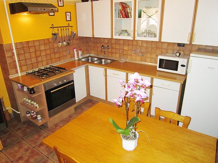 1.Ebene:(unten): gr. Wohnzimmer mit TV/Sat und amerik. Küche mit Esstisch, Kaffeemaschine, Herd mit Backofen, Kühlschrank, Mikrowelle, Bad/WC, 3 Doppelzimmer je mit TV/Sat, 1 Doppelzimmer, 2xBad/WC, Südterrasse, Swimmingpool,