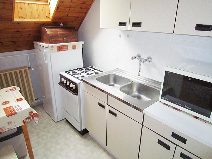 1. Ebene: Terrasse 2. Ebene: separater Eingang: Wohnzimmer mit TV-Sat., Eßtisch, Küche mit Kaffeemaschine, Mikrowelle, Kühlschrank, Herd mit Backofen,
