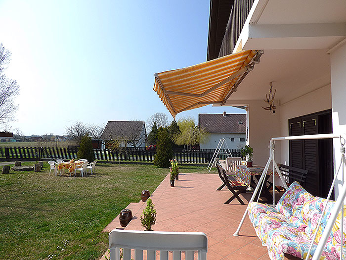 Garten mit Gartenmöbel, Pavillon, Grill, Lagerfeuerplatz, Spielplatz mit Schaukel. Parkplatz auf dem Grundstück.
