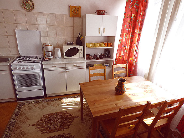 1. Ebene: separater Eingang, Wohnschlafzimmer für 2-3 Personen mit TV/Sat. plus amerikanische Küche, Esstisch, Kaffeemaschine, Mikrowelle, Kühlschrank, Herd mit Backofen, Bad/WC, Terasse.
