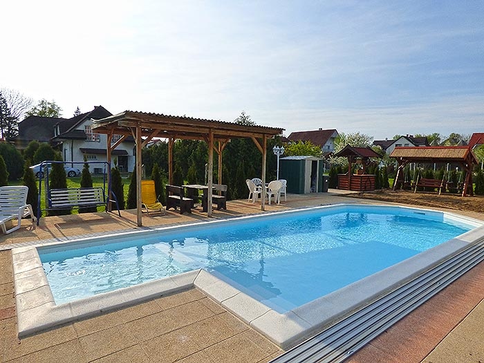 Garten mit Gartenmöbel, Swimmingpool (4,5x10m), Hollywoodschaukel, Grill, Spielplatz, Lagerfeuerplatz, Parkplatz auf dem Grundstück,