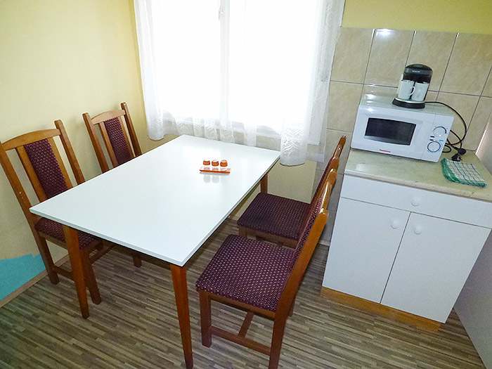 separater Eingang: Wohnzimmer mit mit TV-Sat und Terrasse, amerik. Küche, Kaffeemaschine, Herdplatten, Mikrowelle, Kühlschrank, Terrasse,