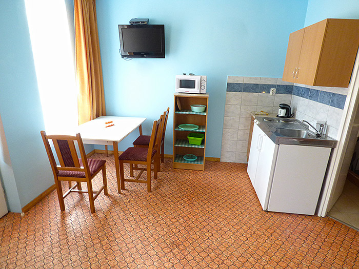 separater Eingang: Wohnschlafzimmer für 2-3 Personen mit TV-Sat und amerik. Küche, Kaffeemaschine, Eßtisch, Herdplatten, Mikrowelle, Kühlschrank, Bad/WC, Terrasse,