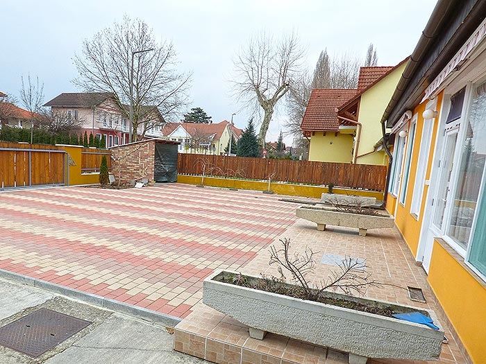 Garten mit Gartenmöbel und Grill, Parkplatz auf dem Grundstück,