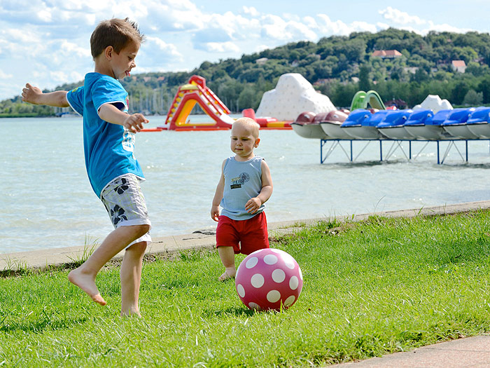 Almadi gehört zu den größten Ferienorten am Nordufer des Balaton. Seine landschaftlich reizvolle Lage inmitten von Hügeln und kleinen Bergen und den gepflegten Uferabschnitten des Balatons fasziniert viele Urlauber. Die gepflegten Strände sind begrünt und bieten eine Vielzahl an Spiel- und Sportmöglichkeiten. Im Ort gibt es ein abwechslungsreiches Angebot an Freizeitaktivitäten. So kann man Tennis- und Volleyball-Plätze nutzen und auch Ruder- und Segelboote mieten. Für Freunde des Reitsport gibt es zudem zahlreiche Reitmöglichkeiten. Ebenso stehen den Feriengästen genügend Fahrradausleihstationen zur Verfügung. Wunderschön spazieren kann man auf der Platanenallee am Balatonufer und im bekannten Öreg-Park (öreg= Park), in dem viele Denkmäler zu besichtigen sind. Hier stehen zum Beispiel Statuen von Rakoczi, Kossuth und Petöfi, der zu den berühmtesten ungarischen Dichtern zählt. Zu Fuß kann man auch den Aussichtspunkt von Ovar erreichen, von dem man einen schönen Ausblick auf den See und die Umgebung hat. Sehr zu empfehlen ist der 6 km lange Lehrpfad, der am Rathausplatz von Almadi beginnt und an vielen Sehenswürdigkeiten des Ortes vorbeiführt. Hier kann man zum Beispiel die aus Sandstein gebaute St. Imre Pfarrkirche bewundern. Der Weg führt auch zum Szabadsag-Aussichtsturm, von dem aus man ein herrliches Panorama auf den Balaton genießen kann. Im Vorort Vörösberenyi steht eine alte Wehrkirche aus dem 13. Jahrhundert, deren zur Verteidigung errichtete Mauer mit Schießscharten bis heute erhalten geblieben ist. In Almadi pulsiert sowohl das Tages- als auch das Nachtleben. Im Zentrum finden Urlauber zahlreiche Geschäfte, Märkte, Restaurants und Cafes, die zum Schlendern und Verweilen einladen. Hier gibt es auch Wechselstuben und Apotheken. Das kulturelle Angebot ist vielfältig. Die Freilichtbühne vor dem Rathaus und der Volkskunst- und Kunstgewerbemarkt bieten den Feriengästen ein interessantes Programm. Am Abend ziehen die Diskotheken von Almadi zahlreiche junge Urlauber an. Viele von ihnen kommen auch aus den kleineren Nachbarorten hierher, um die Nacht zum Tag zu machen.