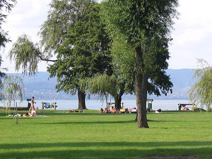 Keresztur ist ein kleiner und ruhiger Ferienort im südwestlichen Teil des Balaton. Mit Mariafürdö ist der Ort im Laufe der Jahre räumlich zusammengewachsen. Während die Ferienhäuser zwischen Ufer und Bahnlinie in dem Ort Mariafürdö stehen, gehören die hinter der Bahnlinie stehenden Häuser häufig bereits zu Keresztur. Zum Baden nutzen die Feriengäste daher meist den Strand von Mariafürdö. Die von Schilf bewachsenen Uferabschnitte werden wegen ihrer Ruhe und Naturbelassenheit besonders von den Anglern geschätzt. Schön sind die zwei Molen, die von den Segelbooten als Anlegestellen genutzt werden. Hier kann man wunderbar flanieren und den wunderschönen Sonnenuntergang genießen. In den Sommermonaten finden zahlreiche kulturelle Veranstaltungen statt, die den Feriengästen abwechslungsreiche Unterhaltung bieten. Kunstinteressierte können hier zudem Ausstellungen besuchen. Empfehlenswert sind Ausflüge in die Weingärten der Umgebung und in das Sumpf- und Naturschutzgebiet Nagyberek. Auch das im Barockstil erbaute Herrenhaus, das Schloss Festetics, sowie die römisch-katholische Kirche mit ihren schönen Wandmalereien gehören zu den Sehenswürdigkeiten des Ortes.