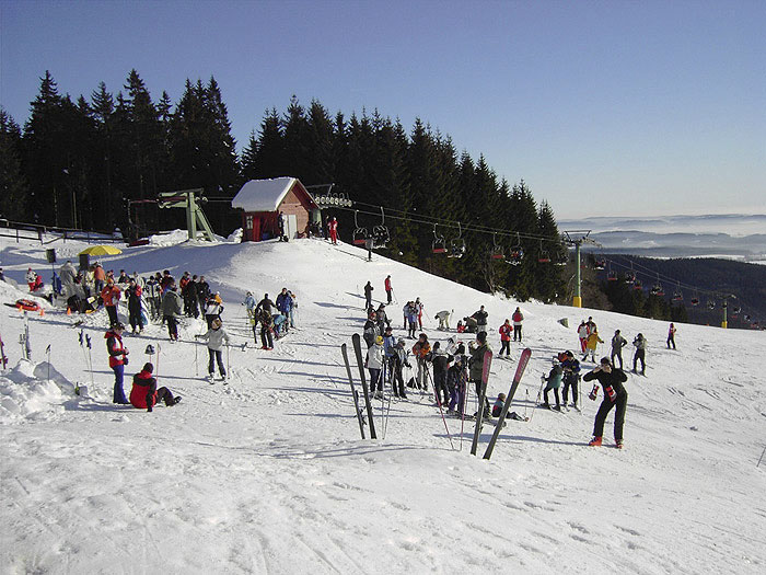 CERNY DUL (auf Deutsch: Schwarze Grube) liegt 1299m ü.M. und am Fuße des großen Berges "Cerna Hora" (Schwarzer Berg). Besonders bekannt ist der Ort für seine Paragliders-Tandemflüge, die von diesem Berg aus starten. Im modernisierten Ortszentrum des Wintersportort Cerny Duls befinden sich Restaurants, Pensionen und Skishops. Von hier aus kommt man auch leicht zum neuen Skiareal "Spicak" , wo auch Skis und Snowboards ausgeliehen werden können. Cerny Dul ein idealer Ausgangspunkt für Ausflüge zu anderen nahe gelegenen Wintersportorten wie z.B. Janske Lazne (6km). Markierte Wanderwege führen in Richtung Berg"Spicak" sowie Berg "Jeleni vrch" und können im Winter als Loipen genutzt werden. Baden und Tennisspielen kann man im Ort das ganzes Jahr über. FAKTEN ZU CERNY DUL WINTERSPORTORT: SAISON: DEZEMBER - MÄRZ Höhe: 600-1001 m Kunstschnee: ja Nachtski: ja Lifte und Seilbahnen Cerny Dul Sessellift: 2 Schlepplift: 10 Kapazität: 10300 Personen / Stunde Pisten: 13 (9,1 km ges.) davon mittel: [rote Pisten Skigebiet Mlade Buky] 4 leicht: [blaue Pisten Skigebiet Mlade Buky] 9 Längste Piste: 1,6 km Extras Loipe/Crosscountry: 26 km Für Snowboarder: Funpark Apres Ski Cerny Dul