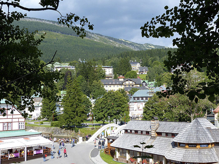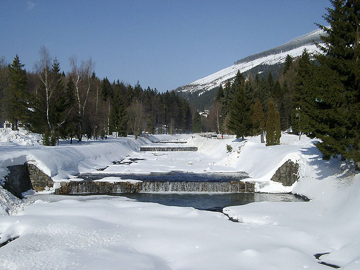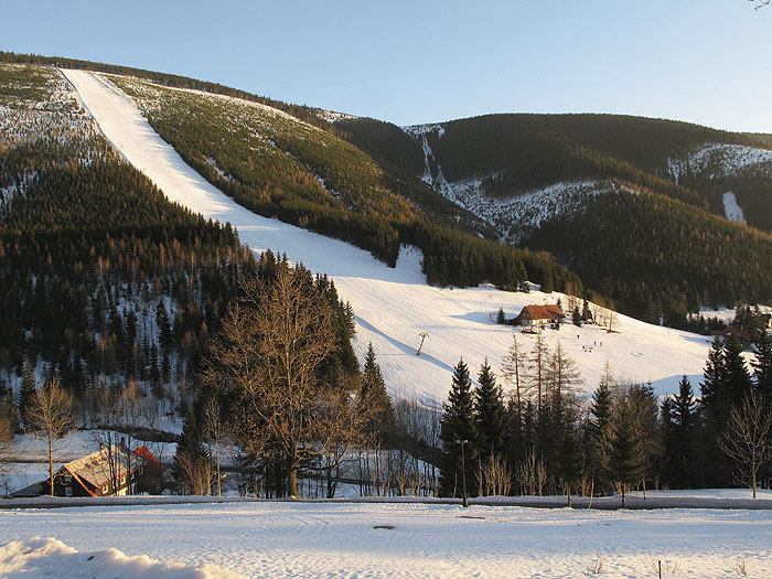 SPINDLERUV MLYN ist das "St. Moritz" Tschechiens! Er ist der bekannteste und auch teuerste tschechische Wintersportort mit guten Skipisten. Hier finden auch Welt Cup Rennen statt. Der Ort (auf Deutsch Spindler Mühle) liegt sehr schön im oberem Elbetal und hat nur ca. 2000 Einwohner. Im Sommer bieten sich bequeme Wanderungen zur Elbquelle oder zur Schneekoppe an. Nach einer Tour kann man im neuen "Aquapark" schön relaxen, baden und schwimmen. Sehr beliebt ist auch die lange Rodelbahn mit Restaurants, Konditoreien und Bars. Sehr gut gepflegte Skipisten und Skilifts bieten eine gute Grundlage zum optimalen Wintersport in allen Schwierigkeitsgraden, sowohl für Snowboarder als auch für Skifahrer. Neben jeder modernen Piste wird Skiunterricht angeboten und können Ski und Snowboards ausgeliehen werden. Im Ortsteil Svaty Petr und am Berg Medvedin werden die Pisten bei fehlendem Schnee künstlich beschneit. Zwischen beiden Orten verkehrt ein Pendelbus. Die Langlaufloipen der Umgebung haben eine Länge von 70 km. Auch Pferdeschlittenfahrten sind im Angebot. Spindlermühlen hat darüber hinaus auch außerhalb der Wintersaison zahlreiche Spiel- und Sportmöglichkeiten zu bieten. Der Ort verfügt über zwölf öffentliche Tennisplätze. Die Tennishallen in den Hotels Horal und Harmony darf jeder nutzen. Das Horal verfügt auch über zwei Kegelbahnen. Hallenbäder gibt es auch in den Hotels Harmony, Horal und Arnika. Auch das Sport-Relax-Center verfügt über ausreichend Hallenplätze. Hier gibt es außerdem ein Schwimmbad mit Gegenstromanlage, Rutsche und Außenbecken. Das Unterhaltungs- und Relax-Center Holiday Centrum im Ortsteil Bedrichov bietet ausreichend Platz zum Schwimmen, Baden, Toben. Es gibt hier auch eine Sauna und ein Fitness-Center. An der Straße zum Gebirgskamm befindet sich auch die Erlebnisanlage Aquapark. Ein Nervenkitzel für Groß und Klein ist sicher der Hochseilgarten im Unterhaltungszentrum Dolska. Hier muss man über kreuz und quer gespannte Seile zum Ziel gelangen. Am Stausee Labska gibt es einen Ruderbootverleih und drei Minigolfanlagen. Eine besondere Attraktion ist auch die Sommerrodelbahn am Medvedin Berghang. Sie hat 22 Kurven, der Tunnel und ist insgesamt 1400m lang. Im Ortsteil Svaty Petr gibt es einen Bikerpark und im Freetime-Park eine Kletterwand und die Möglichkeit zum Bogenschießen. Ein besonderes Erlebnis ist es, mit dem Tandemgleitschirm über Spindleruv Mlyn zu fliegen. Es steht also ein Profi an Ihrer Seite. Gestartet wird vom Medvedin oder auf dem Plan. Für Freunde des Angelsports gibt es den Elbstausee bei Spindleruv Mlyn. Hier können vor allem Schleie und Forellen gefangen werden. Es gibt auch zahlreiche Wanderwege durch die schöne und unberührte Natur. Markierte Wanderwege führen zu den verschiedenen Zielen. Sehenswert ist das romantische Gebirgstal Weißwassergrund (auf Tschechisch: Dul Bileho Labe), zu dem der blau markierte Weg führt. Das Tal liegt 2,5 km nordöstlich von Spindleruv Mlyn zwischen den Bergen Maly Sisk (1440) und Kozy hrbety (1390m). Der Weg ist 6 km lang, am Ende kann man sich in der Baude Bouda u Bileho Labe (Weißwassergrundbaude) essen und trinken. Für den Rückweg empfiehlt sich der kürzere gelbe Weg. Neue Kräfte können Sie in modernen Bars tanken und wer am späten Abend immer noch genug Energie hat, kann die hier angesagtesten Discotheken "Dolská" und die "Silver Rock Bar" besuchen. Das Nachtleben geht oft bis 5 Uhr morgens. Beliebt sind auch die Jazzkonzerte im Hotel Windsor, die freitags ab 21 Uhr stattfinden. Fakten zu Spindlermühle Wintersport: Skisaison: Dezember - April Höhe: 715 - 1310 m Kunstschnee: ja Nachtski: ja Lifte und Seilbahnen Spindlermühle Sessellift: 5 Schlepplift: 27 Kapazität: 18000 Personen / Stunde Pisten: 17 (25 km ges.) davon schwer: [schwarze Pisten Skigebiet Mlade Buky] 3 mittel: [rote Pisten Skigebiet Mlade Buky] 8 leicht: [blaue Pisten Skigebiet Mlade Buky] 6 Längste Piste: 3,3 km Extras Loipe/Crosscountry: 200 km Für Snowboarder: Funpark, Halfpipe, Backcountry, Freeride Apres Ski Spindlermühle Disco, Pub's, Iglu