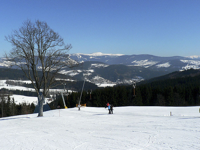 VYSOKÉ NAD JIZEROU (auf deutsch Hochstadt an der Iser) liegt im westlichen Teil vom Riesengebirge und hat ein eigenes Skigebiet „Vetrov“ mit einem wunderschönen Blick von der oberen Liftstation mit Restaurant und Buffet auf die Berge Lysá hora, Kotel, Cerná hora(Schwarzer Berg) und die Snezka(Schneekoppe/H:1602m). Das Skigebiet Vetrov ist vor allem für Familien mit Kindern, fortgeschrittene sowie anfangende Skifahrer bzw. Snowboardfahrer bestimmt. Der Ort liegt nur 5,2km von Jablonec nad Jizerou mit eigenem kleinem Skiareal am Nordhang und 9,7 km südöstlich vom Wintersportort "Rokytnice nad Jizerou" entfernt. Der Ort entstand in der ersten Hälfte des 14. Jahrhunderts und war ein zentraler Handelsplatz nicht zuletzt da in der Umgebung Gold und andere Metalle gefördert wurden. Außerdem entstand später eine Glashütte. Das Skigebiet Vetrov ist vor allem für Familien mit Kindern, fortgeschrittene sowie anfangende Skifahrer bzw. Snowboardfahrer bestimmt. Skiverleih und Skischule sind an der Liftstation vorhanden. FAKTEN ZU ROKYTNICE N. JIZEROU WINTERSPORT: SKISAISON: DEZEMBER - MÄRZ Höhe: 543 - 1312 m Kunstschnee: ja Nachtski: ja Lifte und Seilbahnen Rokytnice n. Jizerou Sessellift: 2 Schlepplift: 24 Kapazität: 16695 Personen / Stunde Pisten: 21(15 km ges.) davon mittel: [rote Pisten Skigebiet Mlade Buky] 1 leicht: [blaue Pisten Skigebiet Mlade Buky] 9 Längste Piste: 3,2 km Extras Loipe/Crosscountry: 90 km