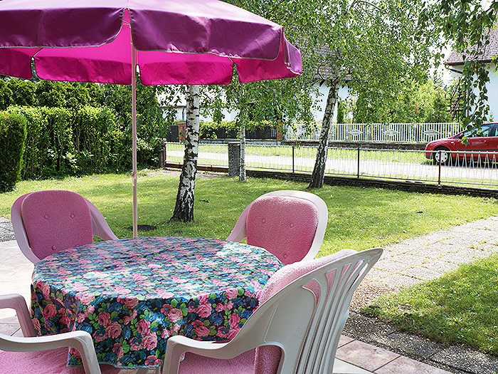 2 Doppelzimmer, kleine Kochmöglichkeit mit Esstisch, Mikrowelle, Kaffeemaschine, Herd mit Backofen, Geschirrspüler, Bad/WC, Terrasse, Garten mit Gartenmöbel, Grill, Haustier erlaubt (6,-€ pro Tag). ///Klimaanlage optional 5.-€ / Tag