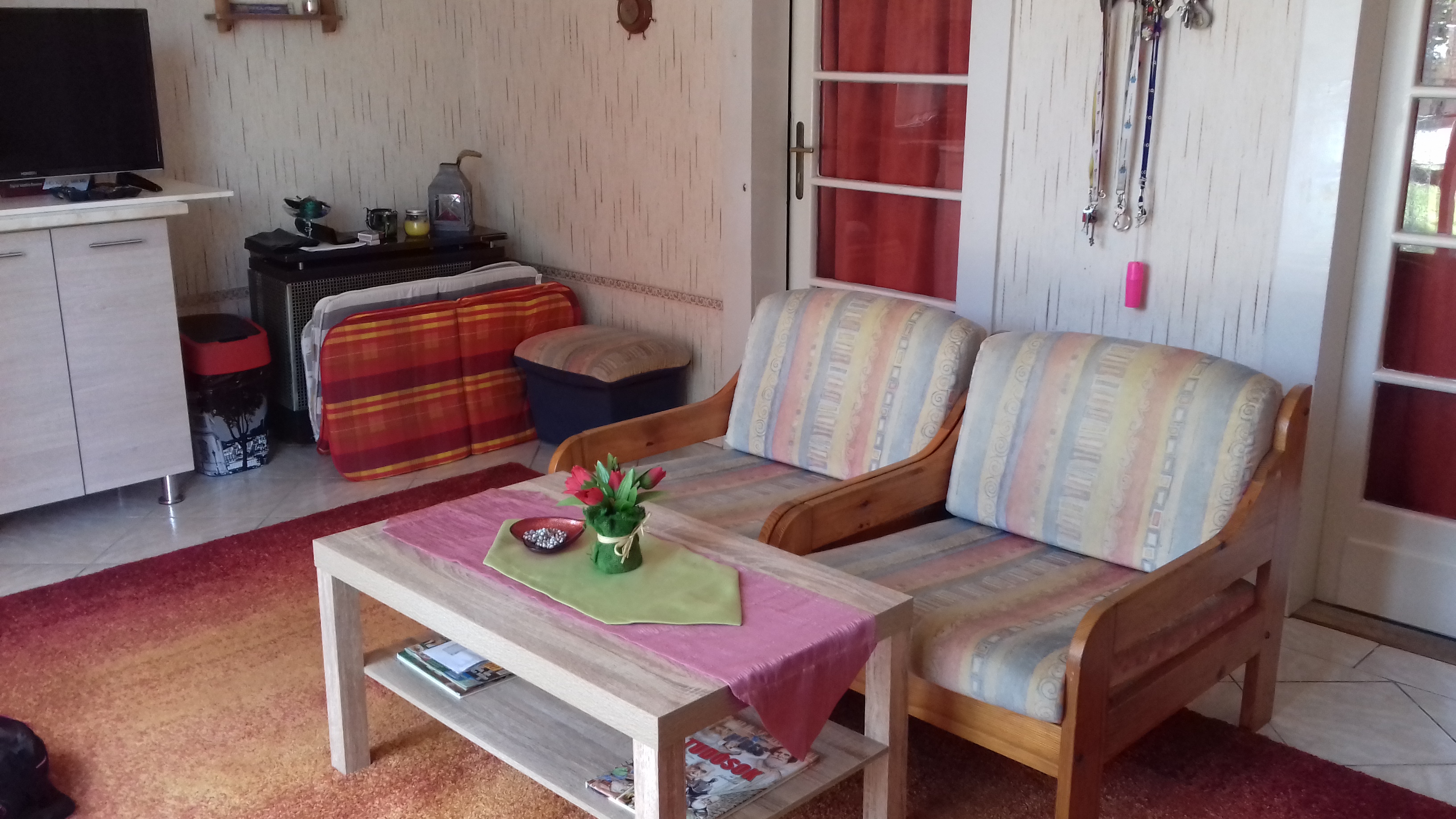 Separater Eingang: Wohnzimmer mit einer Aufbettung für 2 Personen mit TV/Sat., neues Laminat