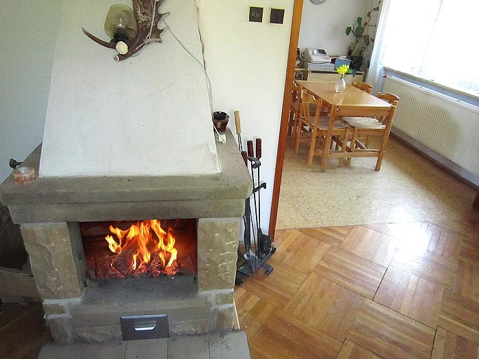 1.Ebene: Wohnschlafraum für 2 Personen mit TV-Sat plus sep. Sitzgarnitur und Kamin,