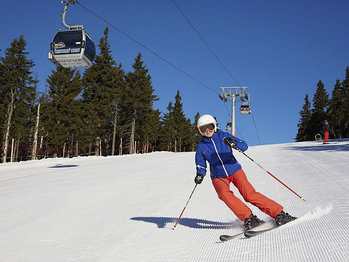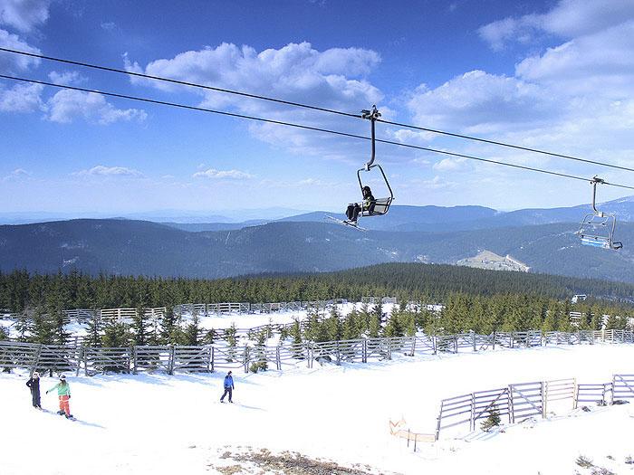 CERNY DUL (auf Deutsch: Schwarze Grube) liegt 1299m ü.M. und am Fuße des großen Berges "Cerna Hora" (Schwarzer Berg). Besonders bekannt ist der Ort für seine Paragliders-Tandemflüge, die von diesem Berg aus starten. Im modernisierten Ortszentrum des Wintersportort Cerny Duls befinden sich Restaurants, Pensionen und Skishops. Von hier aus kommt man auch leicht zum neuen Skiareal "Spicak" , wo auch Skis und Snowboards ausgeliehen werden können. Cerny Dul ein idealer Ausgangspunkt für Ausflüge zu anderen nahe gelegenen Wintersportorten wie z.B. Janske Lazne (6km). Markierte Wanderwege führen in Richtung Berg"Spicak" sowie Berg "Jeleni vrch" und können im Winter als Loipen genutzt werden. Baden und Tennisspielen kann man im Ort das ganzes Jahr über. FAKTEN ZU CERNY DUL WINTERSPORTORT: SAISON: DEZEMBER - MÄRZ Höhe: 600-1001 m Kunstschnee: ja Nachtski: ja Lifte und Seilbahnen Cerny Dul Sessellift: 2 Schlepplift: 10 Kapazität: 10300 Personen / Stunde Pisten: 13 (9,1 km ges.) davon mittel: [rote Pisten Skigebiet Mlade Buky] 4 leicht: [blaue Pisten Skigebiet Mlade Buky] 9 Längste Piste: 1,6 km Extras Loipe/Crosscountry: 26 km Für Snowboarder: Funpark Apres Ski Cerny Dul