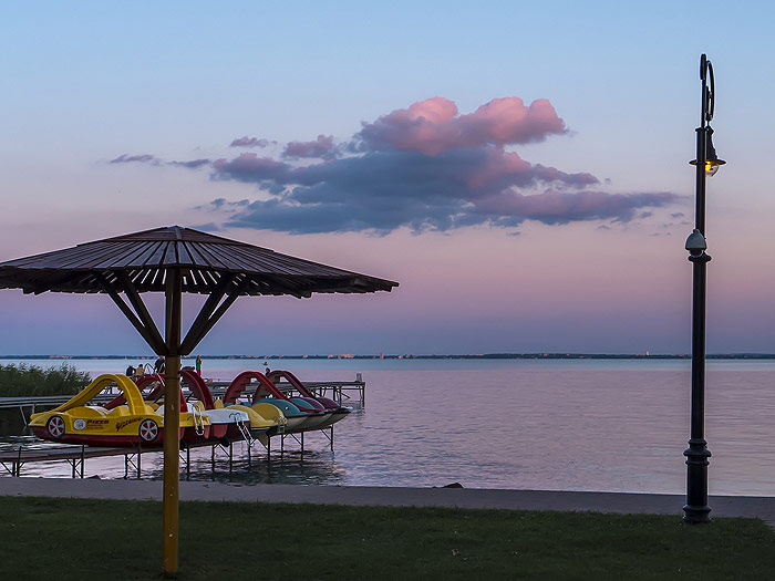 Csopak ist ein kleiner und ruhiger Ferienort am nordöstlichen Ufer des Balaton. Der Weinort kann auf eine 2000-jährige Geschichte zurückblicken. Man hat hier sogar Reste einer einst römischen Villensiedlung gefunden. Heute ist Csopak vor allem für seine Weine bekannt. Touristen schätzen die Ruhe und das landschaftlich reizvolle Ambiente des Ortes. Die Ferienhäuser liegen zumeist am Hügel, von dem aus man ein herrliches Panorama auf den Balaton genießen kann. In den Csardas kann man vorzüglich zu günstigen Preisen speisen und Weine der Gegend probieren. Einige der Csardas bieten auch Reitmöglichkeiten an. Markierte Wanderwege in und um Csopak führen zu wunderschönen Ausflugszielen. Besonders sehenswert ist das Ranolder Schloss aus dem Jahre 1861. Das Schloss, dessen Baustil englischer Landschlösser ähnelt, befindet sich in der Kishegy utca 12.. Im Schlosspark kann man wunderschön spazieren. Sehr interessant ist auch die alte Wassermühle, die unter Denkmalschutz steht. Man findet sie in der Fenyves utca. Die zahlreichen volkstümlichen Bauernhäuser, die es in Csopak zu sehen gibt, machen den faszinierenden Charme des Ortes aus. Sehenswert sind auch die Dorfkirche aus dem 19 Jahrhundert, die Kirchenruinen der damaligen Kirche aus dem 13. Jahrhundert sowie die Villa Budai aus dem Jahre 1820, die in der Füredi utca 87 zu finden ist. Vom Aussichtsturm des Csakany-Berges (327 m) hat man ein besonders guten Ausblick auf den Balaton und die Weinberge von Csopak.