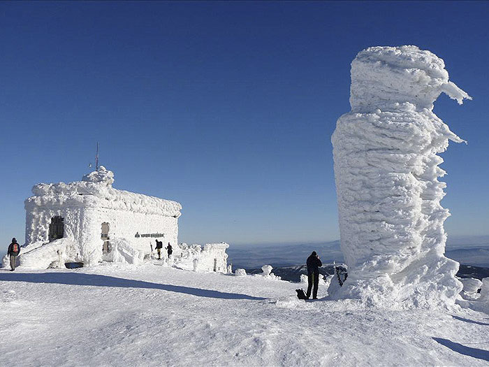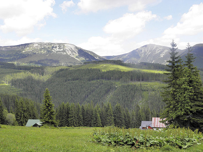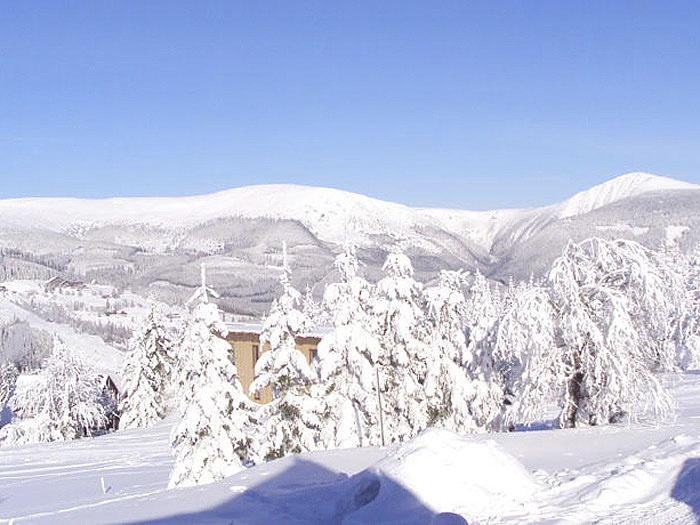 Pec pod Snezkou ist das berühmteste und größte Ski- und Touristikzentrum im Riesengebirge. Der Ort liegt landschaftlich äußerst reizvoll im tiefen Tal des Upa-Flusses am Fuße der "Snezka" (Schneekoppe), dem höchsten Berg Tschechiens ( H:1602). Das Tal entstand einst vor Millionen Jahren als Gletschertal und ist heute das größte Tal im Riesengebirge. Von hier aus gesehen sind die Berge tatsächlich wahre "Riesen". Das Zentrum liegt in zwei Tälern. Von einem Tal aus kann man seit 1949/1950 mit einem Sessellift zur Schneekoppe gelangen. Die Talstation befindet sich 2 km vom Parkplatz in Pec entfernt. Der Lift führt zunächst auf den "Ruzova hora" (Rosenberg) und dann zur "Snezka" (Schneekoppe), die Fahrt dauert insgesamt 25 Minuten. Im zweiten Tal tummeln sich Skifahrer und Snowboarder, für die hier extra eine Piste eingerichtet wurde. Die Piste "Na mulde" wurde so präpariert, dass man mit allen Raffinessen springen und Figuren drehen kann. Der Ort bietet viele Skiverleihe und Skischulen an. Ausgebildete Ski- und Snowboardtrainer geben Unterricht für alle Niveaustufen. Im Winter gibt es zudem mehrere gut präparierte Loipen. Die Autos müssen auf Parkplätzen abgestellt werden, weil im gesamten Ort Parkverbot besteht. Wohltuend entspannen kann man im Wellnesszentrum "Horizont" . Eine neue Sommer- und Winterattraktion ist der Adrenalin-Relaxpark für aktive Sportler sowie für Familien mit Kindern. Hier gibt es die erste Bergrodelbahn(Foto oben). Der Betrieb ist ganzjährig, vor allem die abendlichen Fahrten erfreuen sich unter den Besuchern großer Beliebtheit. Die Hallenschwimmbäder in den Hotels Energetik und Horizont stehen allen offen. Für Freunde des Tennissports gibt es ausreichend Tennisplätze. Für Einkäufe ist die Galerie "Vesely Vylet" zu empfehlen. Das Angebot reicht von Designermoden, Geschenkartikeln und Büchern bis hin zu Keramik und Schmuck. In Pec kann in den Diskotheken "Klondike" und "Bohatyr" sowie im Club 18 der 18. Etage des Hotels Horizonts getanzt werden. Pec ist mit seinen vielen Wanderwegen und Fahrradrouten auch außerhalb der Wintersaison äußerst attraktiv. Empfehlenswert sind Ausflüge zur ökologischen Milchfarm oberhalb von Velka Upa und zur Kirche St. Peter und Paul in Mala Upa. Ein blau markierter Wanderweg von 7 km Länge führt oberhalb von Pec durch das Gebirgstal Obri dul, durch das das Flüsschen Upa (Aupa) fließt. Der Weg führt zur Schneekoppenseilbahn und zur Kapelle, in der der Opfer der Lawinenunglücke gedacht wird. Vom Aussichtsplateau hat man herrliche Ausblicke auf die Umgebung. 20 Minuten entfernt kann man im Erlebnisbergwerk Kovarna selbst Bergmann spielen. Mit Schutzhelm und Schutzmntel dürfen die Besucher in dem 250 m langen Stollen, in dem nur 5 Grad Celsius herrschen sich mit Schlägel und Eisen selbst versuchen. Karten für die Führungen gibt es im Informationszentrum in Pec pod Snezkou.