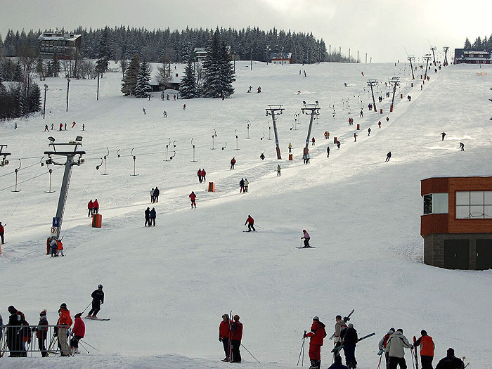 SAISON: DEZEMBER-MÄRZ Saison: Dezember - April Höhe: 755 - 1602 m Kunstschnee: ja Nachtski: ja Lifte und Seilbahnen Pec pod Snezkou Sessellift: 3 Schlepplift: 12 Kapazität: 16200 Personen / Stunde . Pisten: 13 (9 km ges.) davon mittel: [rote Pisten Skigebiet Mlade Buky] 9 leicht: [blaue Pisten Skigebiet Mlade Buky] 4 Längste Piste: 1,5 km Extras: Loipe/Crosscountry: 15 km Für Snowboarder: funpark, Backcountry Apres Ski Pec pod Snezkou, Disco, Pub's
