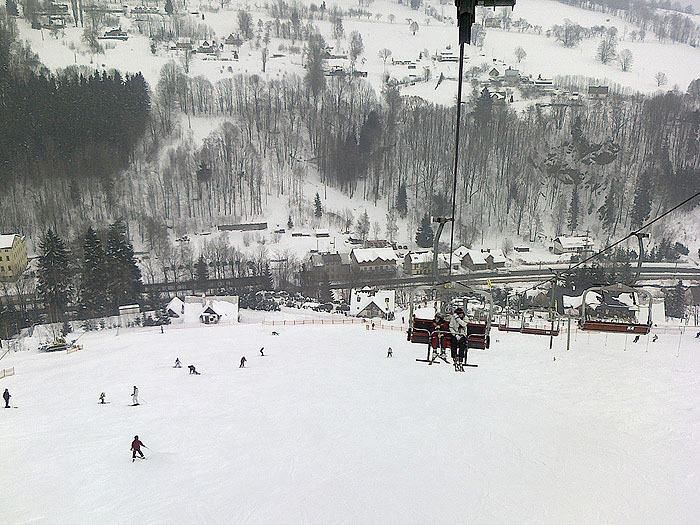 HORNI LÁNOV & DOLNI LÁNOV (wird oft nur Lánov mit Flugplatz genannt) ist ein länglicher Ort mit einer Länge von 8km und besteht aus zwei Teilen, aus Ober-Lánov (Horni Lánov) und Unter-Lánov (Dolni Lánov). Der Ort erstreckt sich von Dolni Dvur mit Skiareal bis zum kleinen Elbtal. Lánov ist ein optimaler und zentral gelegener Ausgangspunkt für den Urlaub im Riesenbegirge und ist nur 2 km vom größeren Wintersportort Vrchlabí entfernt. Lánov verfügt über einen Skilift, der am Berg neben dem Ortszentrum steht. Im Zentrum selbst befinden sich drei große Hotels. 3 km entfernt ist ein kleiner Sportflugplatz, der einzige im tschechischen Riesengebirge übrigens, der jedoch nur von einigen wenigen kleinen Maschinen genutzt wird. Eine Lärmbelastung für die touristischen Gäste erfolgt daher nicht. Ein unvergessliches Erlebnis ist ein Panoramarundflug über das Riesengebirge. Die preiswerten Rundflüge können bei günstigem Wetter von 9 bis 18 Uhr vor Ort gebucht werden. Fakten zu Vrchlabi Wintersport: Skisaison: Dezember-März Höhe: 530 - 1019m Kunstschnee: ja Nachtski: ja Lifte und Seilbahnen Vrchlabi Sessellift: 3 Schlepplift: 9 Kapazität: 10600 Personen / Stunde Pisten 11 davon schwer: [schwarze Pisten Skigebiet Mlade Buky] 1 mittel: [rote Pisten Skigebiet Mlade Buky] 2 leicht: [blaue Pisten Skigebiet Mlade Buky] 8 Längste Piste: 3 km Extras Loipe/Crosscountry: 10 km Für Snowboarder: Apres Ski Vrchlabi