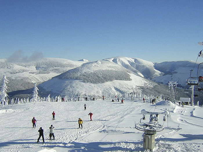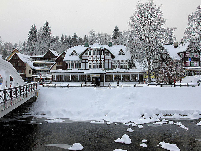 SPINDLERUV MLYN ist das "St. Moritz" Tschechiens! Er ist der bekannteste und auch teuerste tschechische Wintersportort mit guten Skipisten. Hier finden auch Welt Cup Rennen statt. Der Ort (auf Deutsch Spindler Mühle) liegt sehr schön im oberem Elbetal und hat nur ca. 2000 Einwohner. Im Sommer bieten sich bequeme Wanderungen zur Elbquelle oder zur Schneekoppe an. Nach einer Tour kann man im neuen "Aquapark" schön relaxen, baden und schwimmen. Sehr beliebt ist auch die lange Rodelbahn mit Restaurants, Konditoreien und Bars. Sehr gut gepflegte Skipisten und Skilifts bieten eine gute Grundlage zum optimalen Wintersport in allen Schwierigkeitsgraden, sowohl für Snowboarder als auch für Skifahrer. Neben jeder modernen Piste wird Skiunterricht angeboten und können Ski und Snowboards ausgeliehen werden. Im Ortsteil Svaty Petr und am Berg Medvedin werden die Pisten bei fehlendem Schnee künstlich beschneit. Zwischen beiden Orten verkehrt ein Pendelbus. Die Langlaufloipen der Umgebung haben eine Länge von 70 km. Auch Pferdeschlittenfahrten sind im Angebot. Spindlermühlen hat darüber hinaus auch außerhalb der Wintersaison zahlreiche Spiel- und Sportmöglichkeiten zu bieten. Der Ort verfügt über zwölf öffentliche Tennisplätze. Die Tennishallen in den Hotels Horal und Harmony darf jeder nutzen. Das Horal verfügt auch über zwei Kegelbahnen. Hallenbäder gibt es auch in den Hotels Harmony, Horal und Arnika. Auch das Sport-Relax-Center verfügt über ausreichend Hallenplätze. Hier gibt es außerdem ein Schwimmbad mit Gegenstromanlage, Rutsche und Außenbecken. Das Unterhaltungs- und Relax-Center Holiday Centrum im Ortsteil Bedrichov bietet ausreichend Platz zum Schwimmen, Baden, Toben. Es gibt hier auch eine Sauna und ein Fitness-Center. An der Straße zum Gebirgskamm befindet sich auch die Erlebnisanlage Aquapark. Ein Nervenkitzel für Groß und Klein ist sicher der Hochseilgarten im Unterhaltungszentrum Dolska. Hier muss man über kreuz und quer gespannte Seile zum Ziel gelangen. Am Stausee Labska gibt es einen Ruderbootverleih und drei Minigolfanlagen. Eine besondere Attraktion ist auch die Sommerrodelbahn am Medvedin Berghang. Sie hat 22 Kurven, der Tunnel und ist insgesamt 1400m lang. Im Ortsteil Svaty Petr gibt es einen Bikerpark und im Freetime-Park eine Kletterwand und die Möglichkeit zum Bogenschießen. Ein besonderes Erlebnis ist es, mit dem Tandemgleitschirm über Spindleruv Mlyn zu fliegen. Es steht also ein Profi an Ihrer Seite. Gestartet wird vom Medvedin oder auf dem Plan. Für Freunde des Angelsports gibt es den Elbstausee bei Spindleruv Mlyn. Hier können vor allem Schleie und Forellen gefangen werden. Es gibt auch zahlreiche Wanderwege durch die schöne und unberührte Natur. Markierte Wanderwege führen zu den verschiedenen Zielen. Sehenswert ist das romantische Gebirgstal Weißwassergrund (auf Tschechisch: Dul Bileho Labe), zu dem der blau markierte Weg führt. Das Tal liegt 2,5 km nordöstlich von Spindleruv Mlyn zwischen den Bergen Maly Sisk (1440) und Kozy hrbety (1390m). Der Weg ist 6 km lang, am Ende kann man sich in der Baude Bouda u Bileho Labe (Weißwassergrundbaude) essen und trinken. Für den Rückweg empfiehlt sich der kürzere gelbe Weg. Neue Kräfte können Sie in modernen Bars tanken und wer am späten Abend immer noch genug Energie hat, kann die hier angesagtesten Discotheken "Dolská" und die "Silver Rock Bar" besuchen. Das Nachtleben geht oft bis 5 Uhr morgens. Beliebt sind auch die Jazzkonzerte im Hotel Windsor, die freitags ab 21 Uhr stattfinden. Fakten zu Spindlermühle Wintersport: Skisaison: Dezember - April Höhe: 715 - 1310 m Kunstschnee: ja Nachtski: ja Lifte und Seilbahnen Spindlermühle Sessellift: 5 Schlepplift: 27 Kapazität: 18000 Personen / Stunde Pisten: 17 (25 km ges.) davon schwer: [schwarze Pisten Skigebiet Mlade Buky] 3 mittel: [rote Pisten Skigebiet Mlade Buky] 8 leicht: [blaue Pisten Skigebiet Mlade Buky] 6 Längste Piste: 3,3 km Extras Loipe/Crosscountry: 200 km Für Snowboarder: Funpark, Halfpipe, Backcountry, Freeride Apres Ski Spindlermühle Disco, Pub's, Iglu