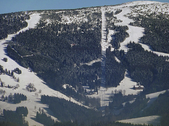 VYSOKÉ NAD JIZEROU (auf deutsch Hochstadt an der Iser) liegt im westlichen Teil vom Riesengebirge und hat ein eigenes Skigebiet „Vetrov“ mit einem wunderschönen Blick von der oberen Liftstation mit Restaurant und Buffet auf die Berge Lysá hora, Kotel, Cerná hora(Schwarzer Berg) und die Snezka(Schneekoppe/H:1602m). Das Skigebiet Vetrov ist vor allem für Familien mit Kindern, fortgeschrittene sowie anfangende Skifahrer bzw. Snowboardfahrer bestimmt. Der Ort liegt nur 5,2km von Jablonec nad Jizerou mit eigenem kleinem Skiareal am Nordhang und 9,7 km südöstlich vom Wintersportort "Rokytnice nad Jizerou" entfernt. Der Ort entstand in der ersten Hälfte des 14. Jahrhunderts und war ein zentraler Handelsplatz nicht zuletzt da in der Umgebung Gold und andere Metalle gefördert wurden. Außerdem entstand später eine Glashütte. Das Skigebiet Vetrov ist vor allem für Familien mit Kindern, fortgeschrittene sowie anfangende Skifahrer bzw. Snowboardfahrer bestimmt. Skiverleih und Skischule sind an der Liftstation vorhanden. FAKTEN ZU ROKYTNICE N. JIZEROU WINTERSPORT: SKISAISON: DEZEMBER - MÄRZ Höhe: 543 - 1312 m Kunstschnee: ja Nachtski: ja Lifte und Seilbahnen Rokytnice n. Jizerou Sessellift: 2 Schlepplift: 24 Kapazität: 16695 Personen / Stunde Pisten: 21(15 km ges.) davon mittel: [rote Pisten Skigebiet Mlade Buky] 1 leicht: [blaue Pisten Skigebiet Mlade Buky] 9 Längste Piste: 3,2 km Extras Loipe/Crosscountry: 90 km