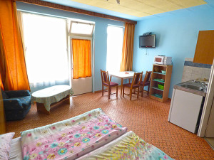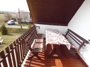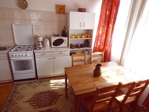 2.Ebene: separater Eingang: für 9 Personen große Küche, Eßtisch, Kaffeemaschine, Mikrowelle, Kühlschrank, Herdplatten, Waschmaschine, Geschirrspüler, 1 Doppelzimmer mit Terrasse,